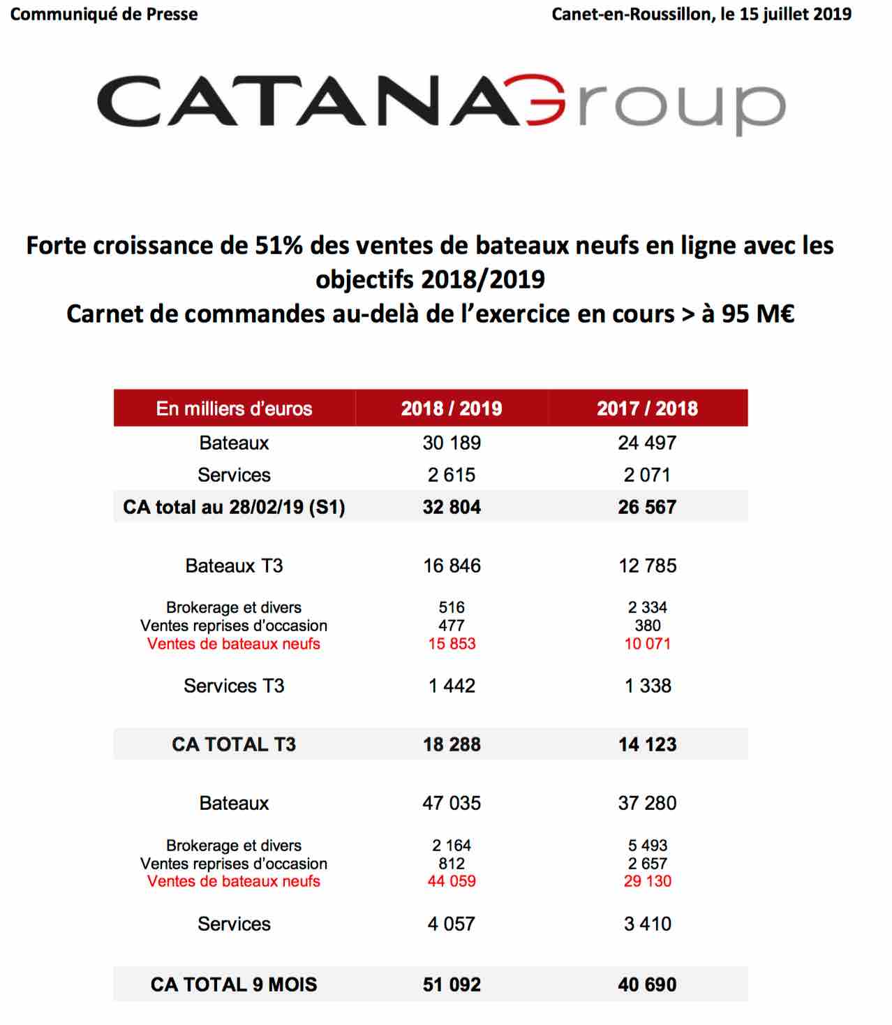 CATANA GROUP confirme une nouvelle très forte progression de son chiffre d’affaires du troisième trimestre à 51 M€ en hausse de 25.6 % par rapport à 2017/2018. Cette trajectoire de croissance solide, en ligne avec les prévisions, témoigne de l’engouement toujours plus fort pour la gamme de catamarans BALI, désormais incontournable sur son marché.