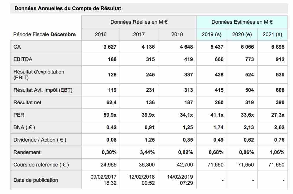 Les Prévisions : entre 2018 et 2021, le CA annuel devrait augmenter de 50% et le résultat net devrait doubler.