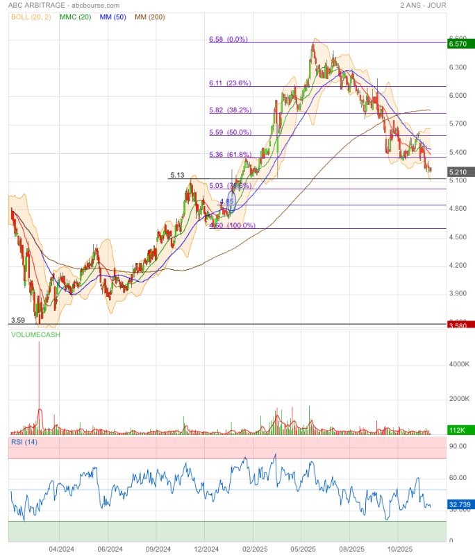 Peut-être une petite pièce entre 5,13 € et 5,03 € (78,6% Fibo) ? 🤔