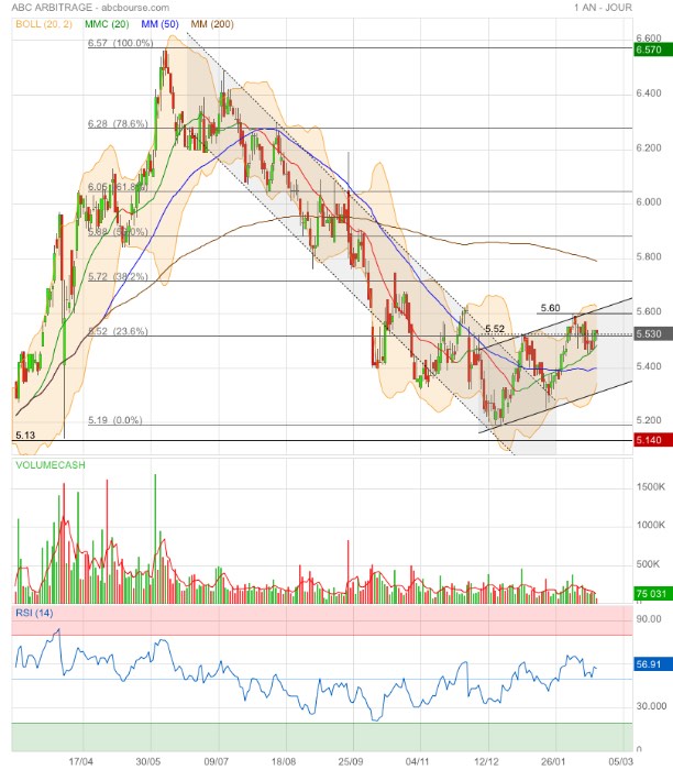 Le double top 5,35€ et la (petite) correction qui a suivi n’invalident pas l’objectif 5,53€ précédemment évoqué. À mon avis ! 😊