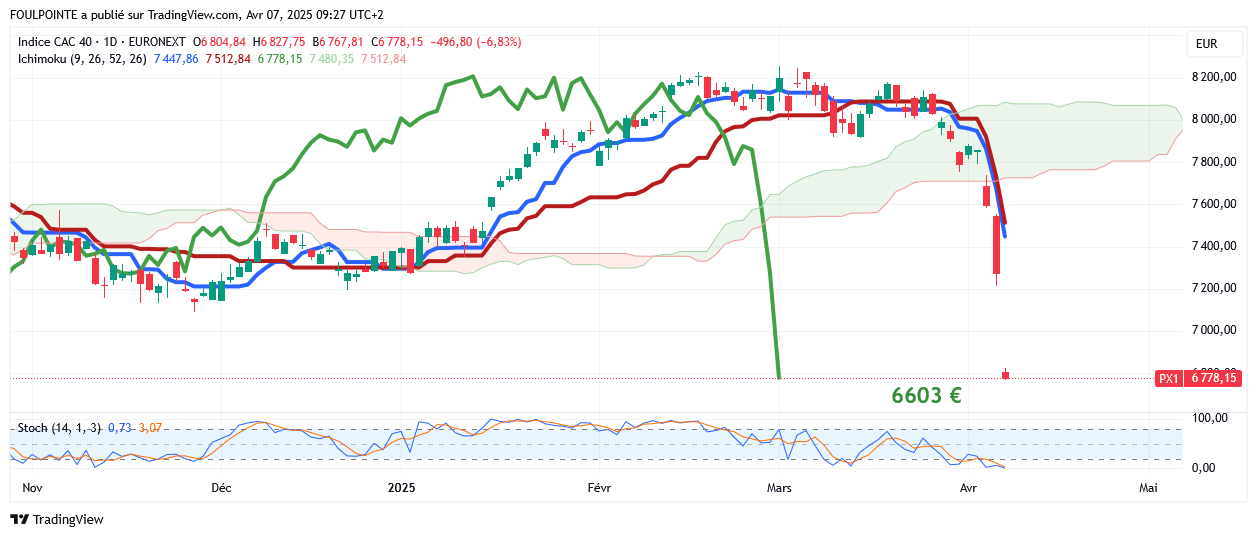Baissier bien sûr en Ichimoku en journalier.