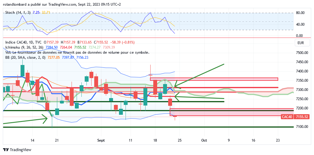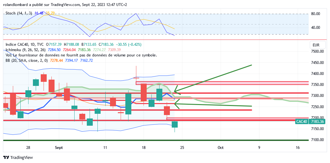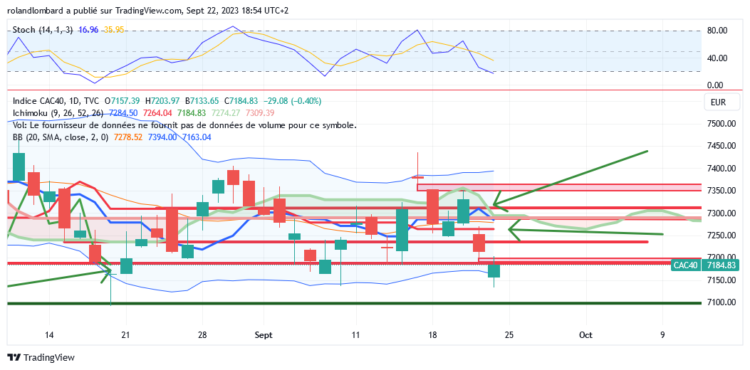 Il semble bien être en train de réintégrer le range 7355 pts / 7188 pts, et, peut-être, de refermer le gap de ce matin.