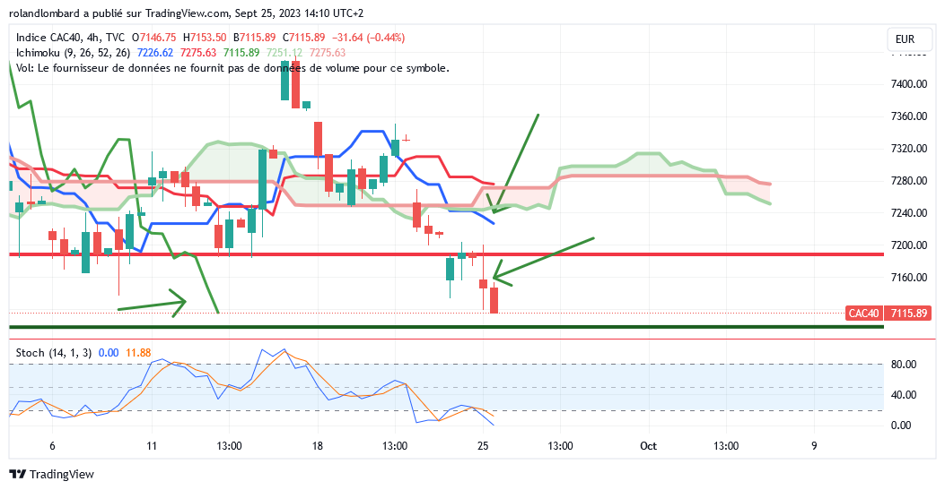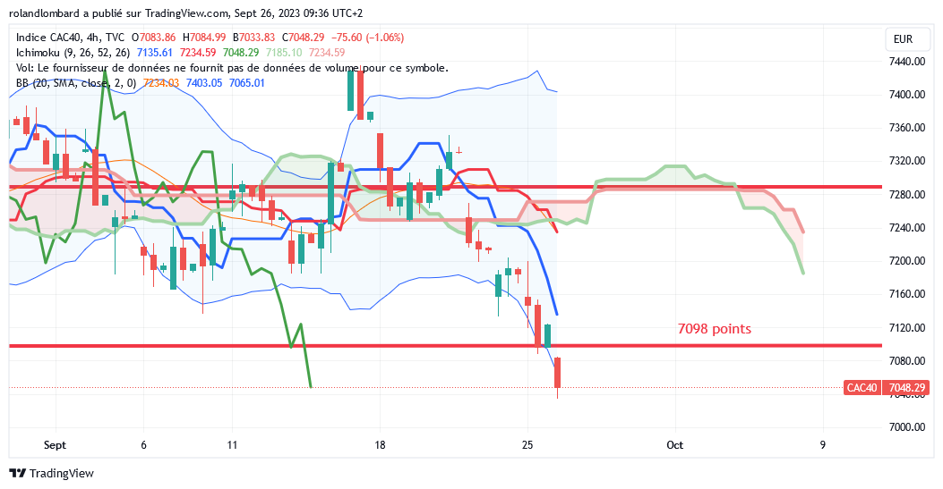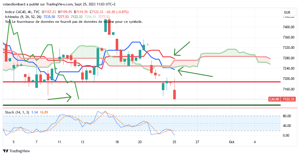 Ouverture en baisse, par un gap baissier et rupture du support des 7188 points.