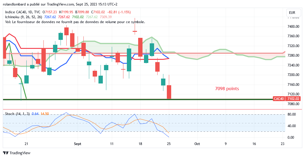 Vous me passerez bien la différence d'un €. Plus bas exactement à 7099,88 points.