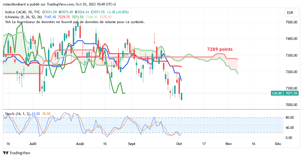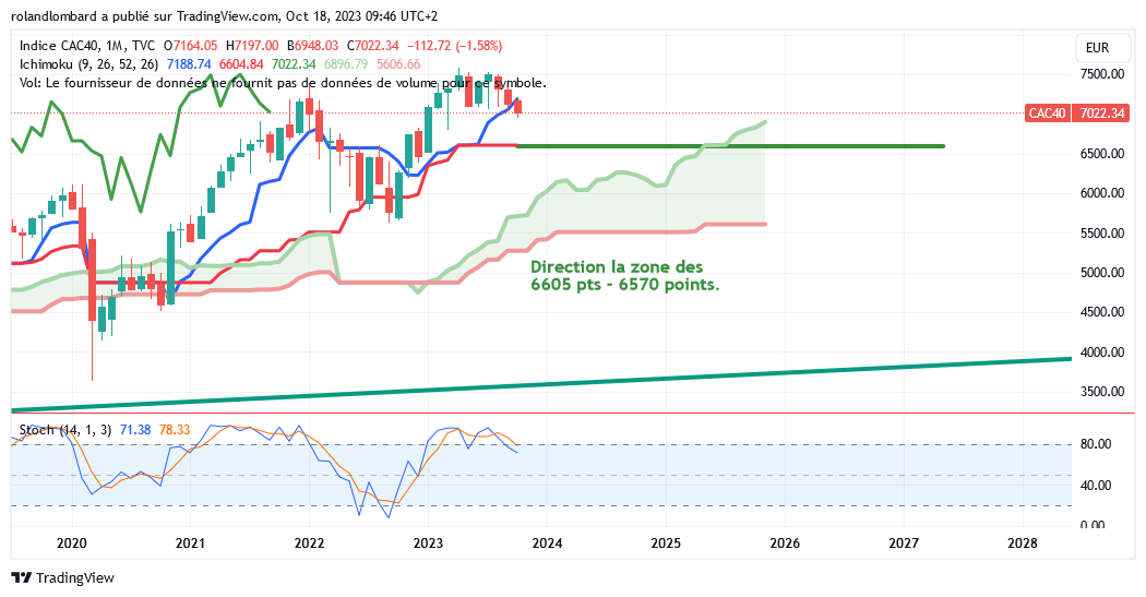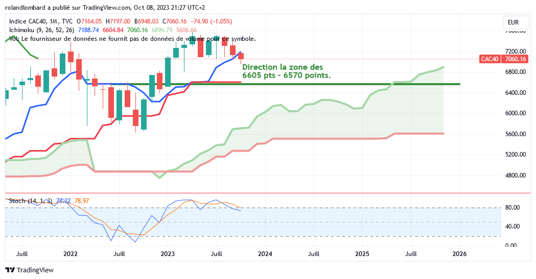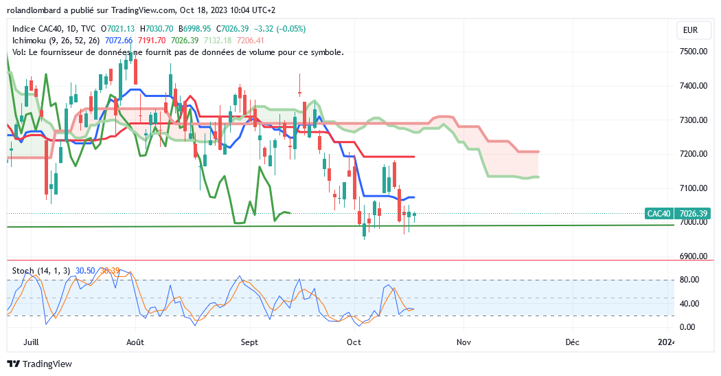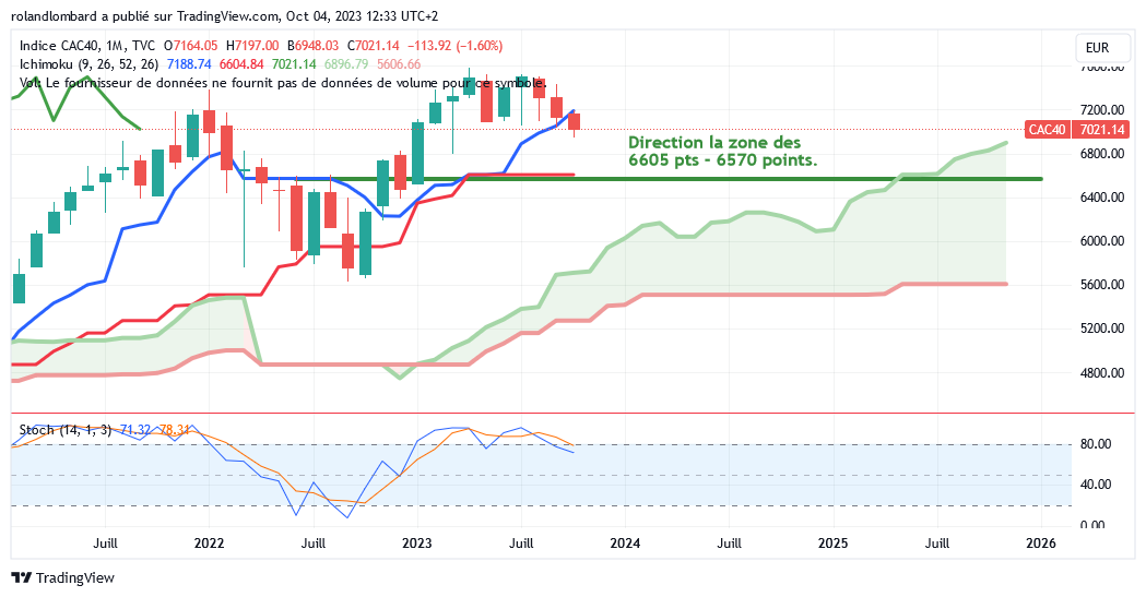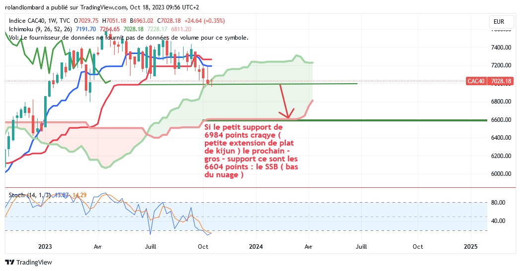 Plus bas à 7033 € ( - 1,18 % ) l'objectif ce sont les 6935 € ( SSB journalier ).
