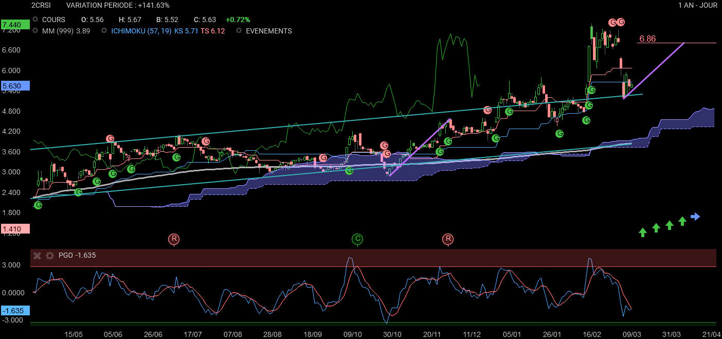 Concernant le PDG de 2CRSI je le trouve très sérieux (je suis d'accord que la qualité du management est largement plus importante que l'analyse technique). Il est conscient que la vente de serveur n'est qu'une étape pour 2CRSI car leur vraie ambition est de produire de l'énergie à partir d'une faible source de challeur.
