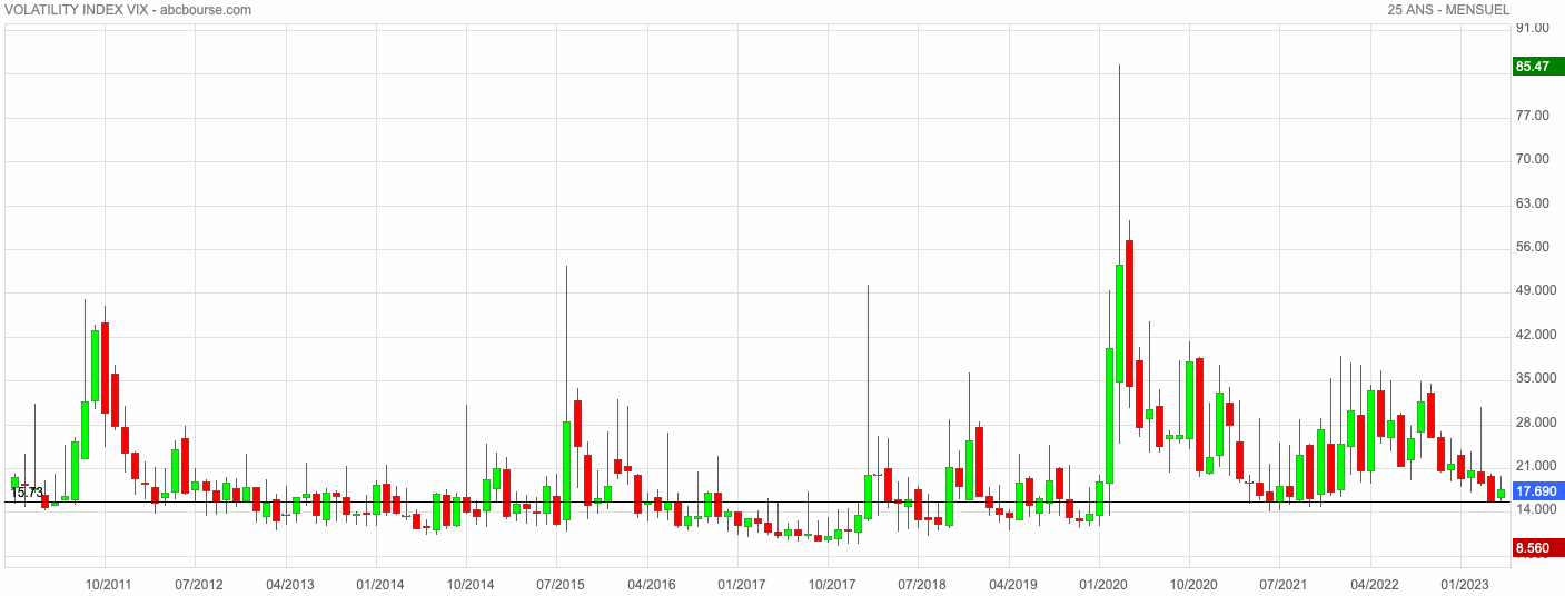 Par rapport à hier, le VIX a bu frais est s'est posé sur un support LT. À titre purement indicatif et ludique