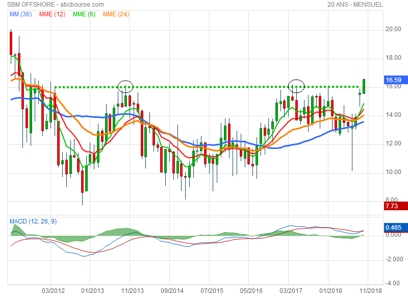 ah bien, des niveaux pas vus depuis 2012, macd mensuel cross,