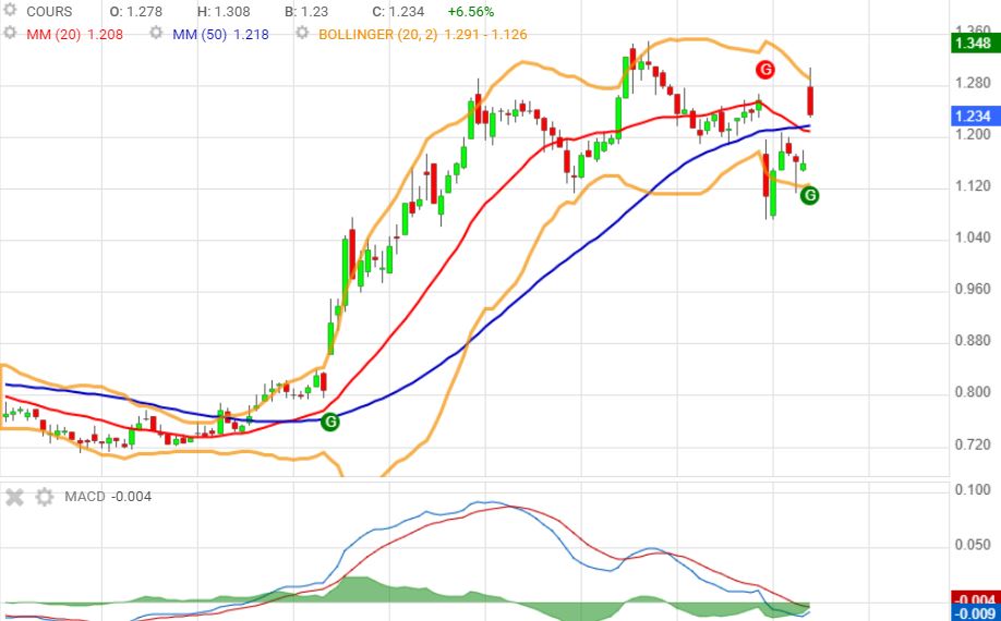 Prend plus de 5% à 1,26 et sort de la BOL.