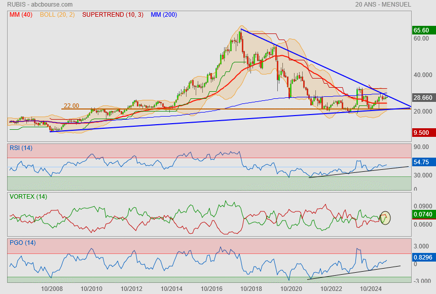 Résultat. Le résultat net de ce distributeur de carburant très présent en Afrique et dans les Caraïbes a augmenté en moyenne de 11% par an sur la période 2014-2024. L'activité est portée par l'évolution démographique, l'enrichissement de la classe moyenne et le développement du réseau routier dans les zones couvertes. Pour élargir son spectre vers les énergies vertes, Rubis a pris le contrôle de Photosol qui développe des parcs solaires... Alors que l'Ebitda était de 721 ME en 2024, il est annoncé entre 710 et 760 ME cette année. Le rendement atteint le niveau confortable de 6,8% compte tenu du dernier coupon de 2,02 Euros.