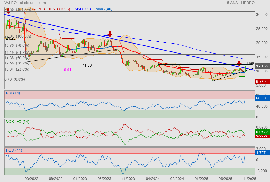 À première vue, les nouveaux objectifs semblent plus réalistes (une approche que nous saluons) et globalement conformes aux attentes, explique Oddo BHF. À plus court terme, le groupe a également légèrement relevé ses prévisions de flux de trésorerie disponible ajusté pour 2025, les portant à plus de 550 millions d'euros, contre 450 à 550 ME précédemment, tout en confirmant ses autres indicateurs. Globalement, ni les objectifs ni le discours présenté ne réservent de grandes surprises (la réduction des coûts demeure le principal moteur de la croissance des marges, une discipline d'investissement plus rigoureuse vise à améliorer la génération de trésorerie et l'unité Brain devrait rester le principal moteur de croissance à l'avenir), indique le courtier. Selon lui, comme souligné à plusieurs reprises, le principal défi pour Valeo en tant que fournisseur technologique de premier rang reste sa capacité à réduire sa dette de manière organique tout en augmentant ses ventes - un objectif qu'elle n'a pas atteint depuis près de dix ans (à l'instar de la plupart de ses concurrents, tels qu'Aumovio, bien que la situation financière de ce dernier soit bien plus solide).