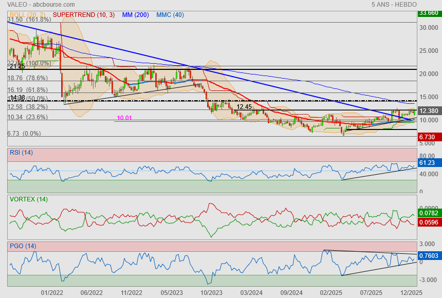 (Boursier.com) — Au premier semestre 2025, les résultats de Valeo s'inscrivent dans la trajectoire définie d'amélioration de sa rentabilité et de sa génération de trésorerie grâce à la conduite rigoureuse de ses activités notamment au travers de la gestion stricte de ses prix, des mesures de réduction de ses coûts et de ses investissements ainsi que du repositionnement du Groupe vers des nouveaux contrats à meilleures marges :