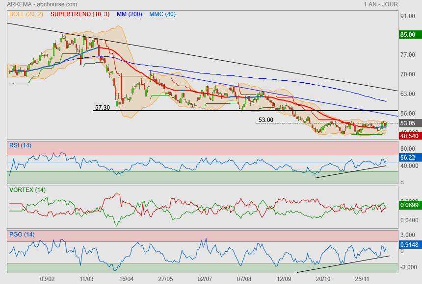 (Boursier.com) — Arkema a affiché une solide performance en 2024 avec un EBITDA en légère progression à 1,53 Md€ et une marge d'EBITDA à 16,1%, soulignant la résilience et la capacité d'adaptation du groupe dans un environnement macroéconomique difficile. Le Chiffre d'affaires s'établit à 9,5 Mds€, stable par rapport à 2023 avec une croissance des volumes de 2,4% soutenue par la progression des Matériaux de Spécialités en Asie. La dynamique de volumes est plus favorable sur certains marchés comme le sport, l'emballage, les batteries ou l'énergie. L'Effet prix est de - 3%, traduisant une légère baisse des matières premières.