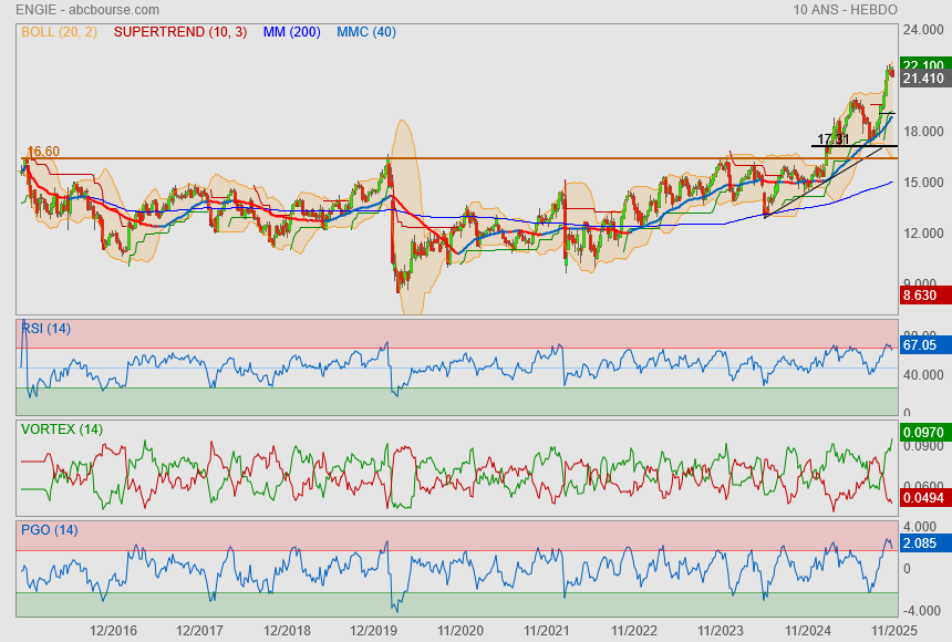 La société dirigée par Catherine MacGregor est soutenue par Bank of America qui a relevé son opinion sur le titre à "acheter" contre "neutre" précédemment, tout en réhaussant son objectif de cours à 21 euros contre 18 euros.