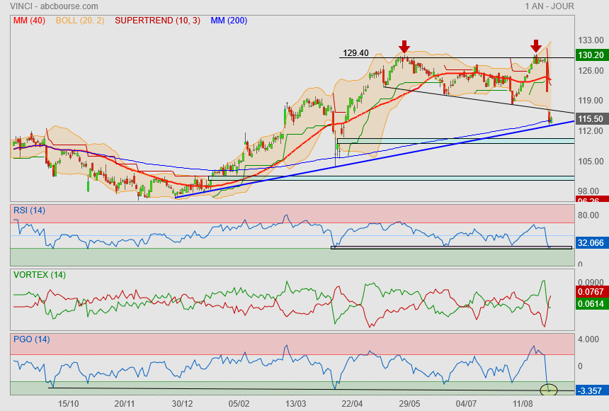 Sur la base de ces évolutions, Vinci afficherait en 2025 une nouvelle hausse de son chiffre d'affaires et de ses résultats, avant l'impact de l'alourdissement de la fiscalité des sociétés en France qui annonce par ailleurs un dividende de 4,75 euros par action au titre de l’exercice 2024..