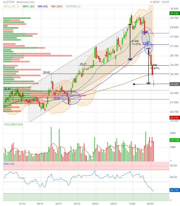 Depuis une grosse semaine Alstom se fait descendre par les scuds baissiers
