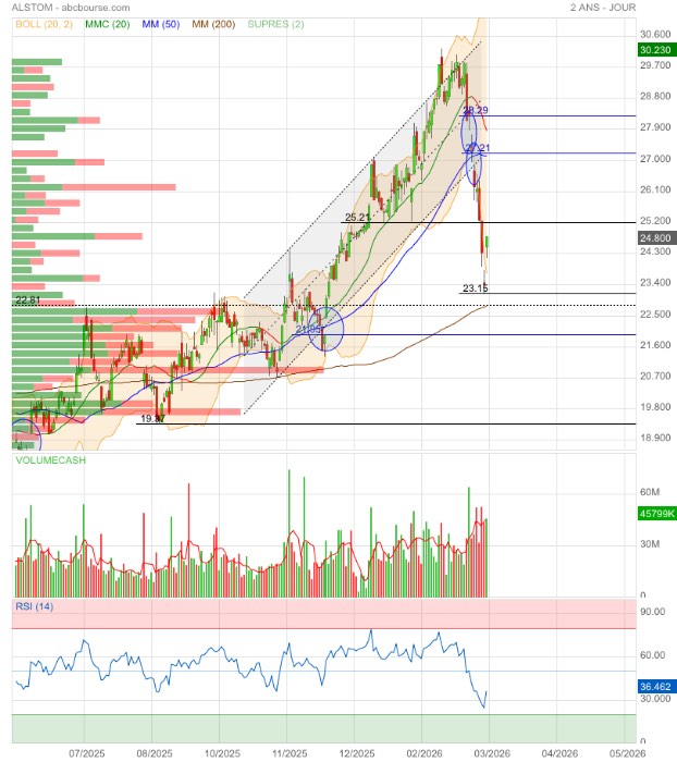 Teste un support 25,21€ et, si casse alors prochain support 24,42€ 😕