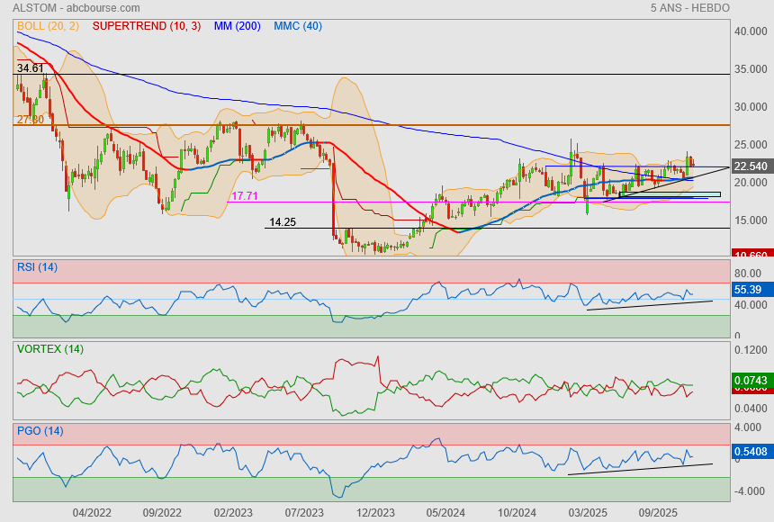 De ce fait, le cash flow libre «vient de marquer son point bas» et en 2026/2027, l’analyste l’attend à plus de 700 millions d’euros, avant plus de 1 milliard d’euros l’an d’ici 2030. Jusqu’alors neutre, Citi est donc passé à l’achat sur l’action Alstom en visant non plus 21€, mais 31€, soit un potentiel de 28%. »
