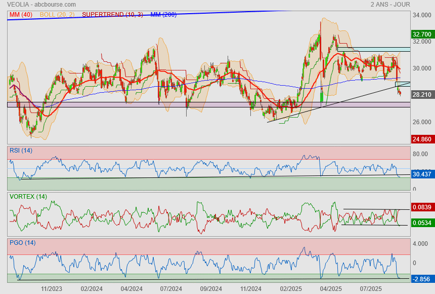 Pour un portefeuille diversifié, Veolia peut jouer un rôle défensif, en particulier dans des phases de correction de marché ou d’aversion au risque. Pour les investisseurs plus tactiques, l’entrée sur repli ou en cas de confirmation d’un nouveau contrat structurant pourrait constituer un point d’entrée optimal.