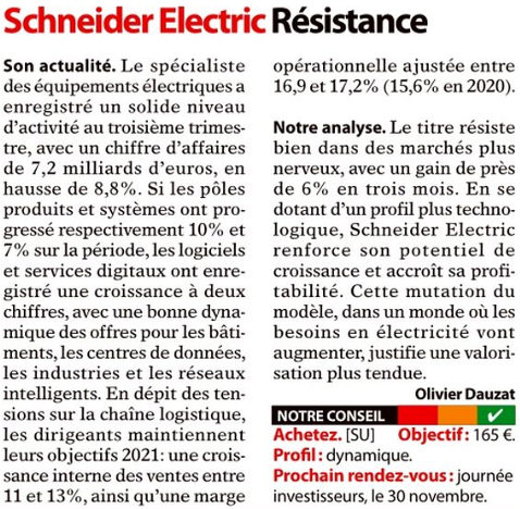Bryan Garnier revalorise Schneider de 143 à 150 euros ('acheter').