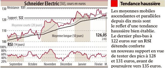 Morgan Stanley vise désormais 135 euros sur Schneider Electric contre 117 euros précédemment (pondération en ligne).