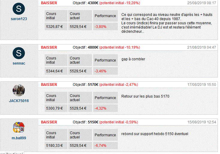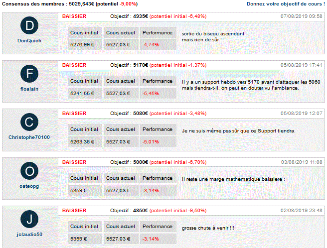 le vrai problème c'est pas tellement de savoir si le CAC va faire krach boum uh et revisiter les 5000. ça devrait arriver tôt ou tard ou pas. Chaque anticipation devrait être donnée avec une date. Genre 5000 pour le 31/12 de cette année. Attention ce n'est pas mon avis, je n'essaie pas d'anticiper, je suis (verbe suivre) le marché
