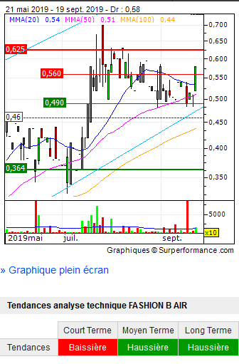 FASHION B. AIR annonce qu'au terme d'une procédure d'éviction initiée par le bailleur des locaux de la boutique située 26 avenue des Champs Elysées-75008 PARIS, et suite à un rapport d'expertise judiciaire, elle a perçu une indemnité d'éviction.