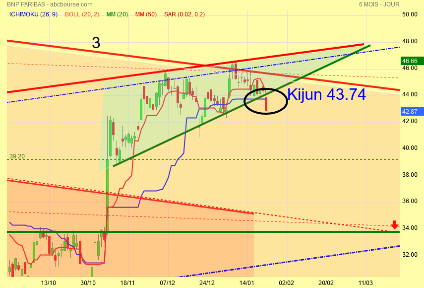 Ici , BNP , la Kijun bleu plate est enfoncée , située à 43.74 qui devient Résistance .