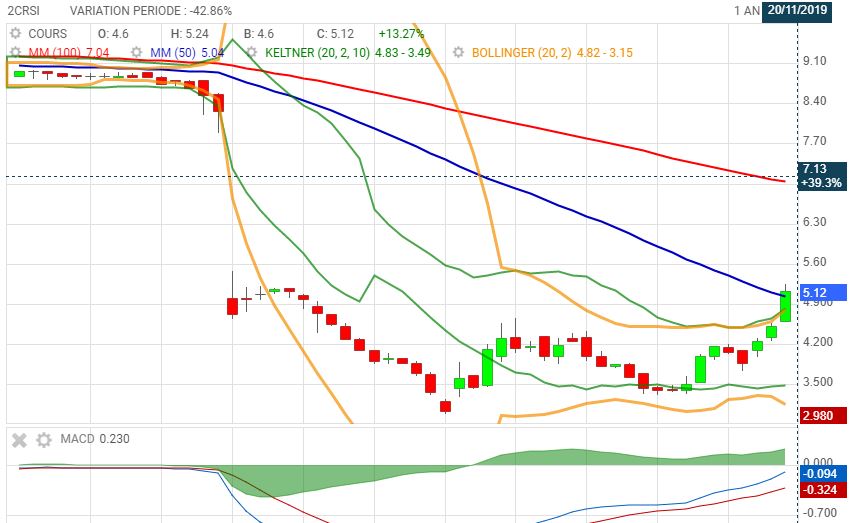 Regardez les volumes en net augmentation, l'énorme GAP entre 5.45€ et 7.95€ (6mois /jour), +la bonne info "CRI74" ........ ...ELLE VA GRIMPER, c'est mécanique.