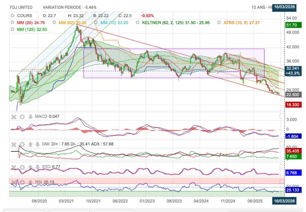 Concernant lA FDJ, la chute actuellement des jeux chez les dépositaires buralistes entraine de lourdes pertes de CA qui devrait en grand partie sabrer l'EBIDTA et la rentabilité du groupe qu'on disait hors du temps et toute atteinte.