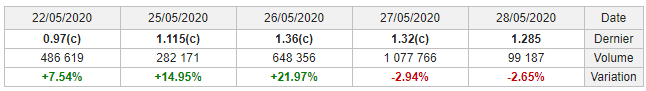 Soldes ! Cours temps réel: 1,285€ -2,65%