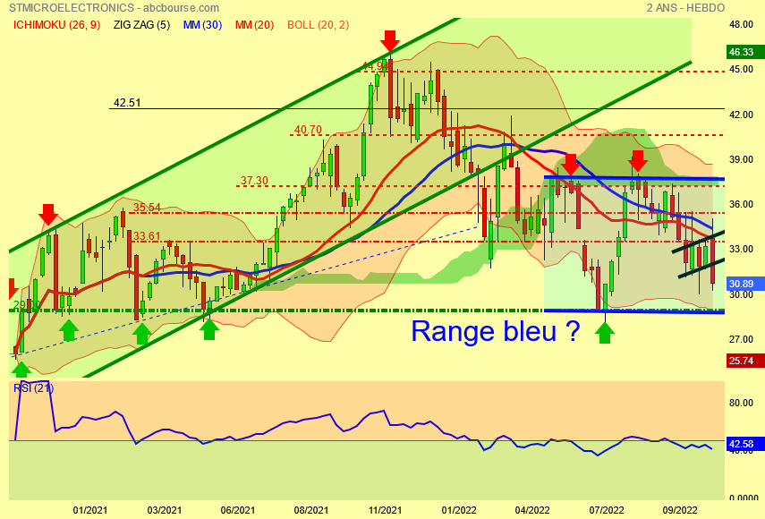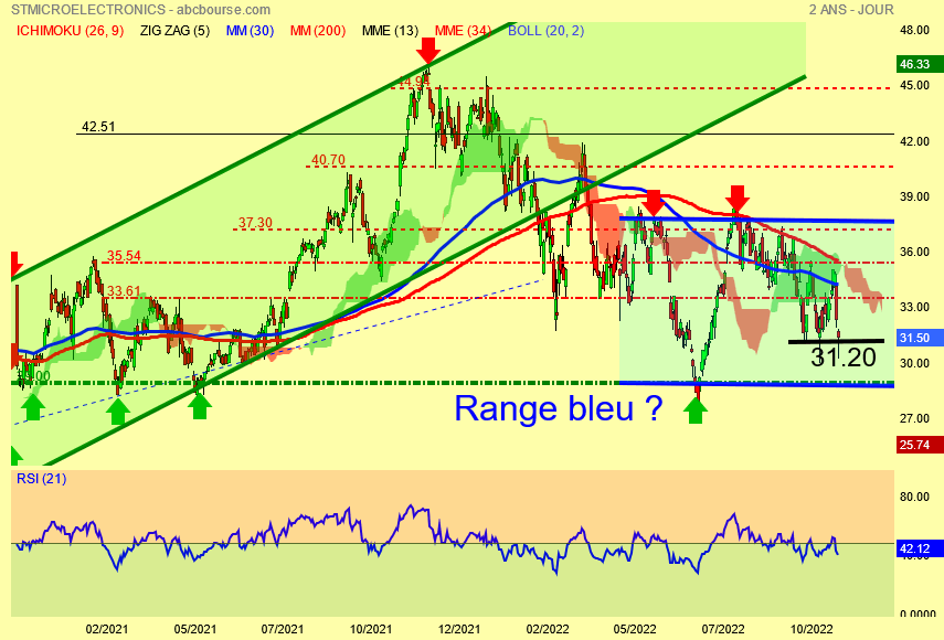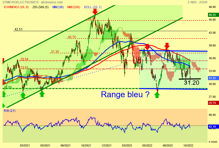 5 semaines que le cours est dans un nouveau range 31.20 - 33.85 € à l' intérier du grand range 38 - 29 €