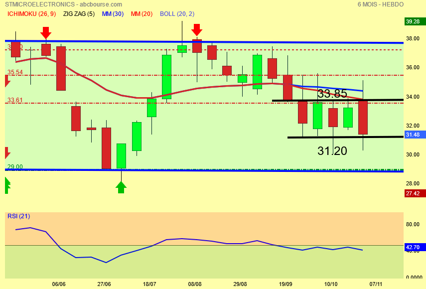 Résistances à 33.60 puis 35.55 et enfin 38 €