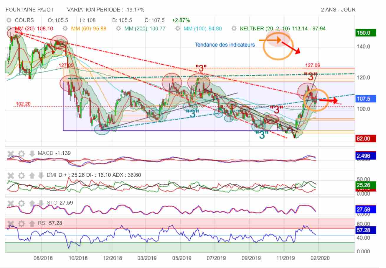 On remplit en triple top baissier après publication semestrielle.La poussée haussière décante : le RSI et le MACD était en surchauffe. On devrait tenter d'aller combler le GAP en se rapprochant de la clôture d'exercice (décalé).