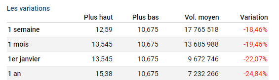 Cours | Graphes | News | Analyses et conseils | Société | Historiques | Vie du titre | Secteur | Forum |