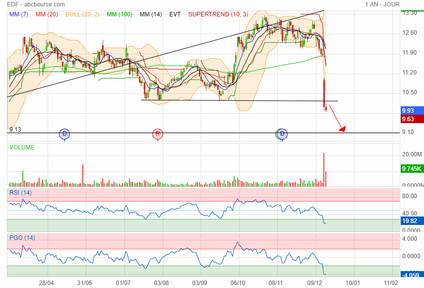 EDF est uns grosse arnaque,introduite en bourse en 2005 au prix de 32 euros ,en 2007 elle atteint 87 euros et depuis c'est la dégringolade avec un cours divisé par 3 depuis l'introduction