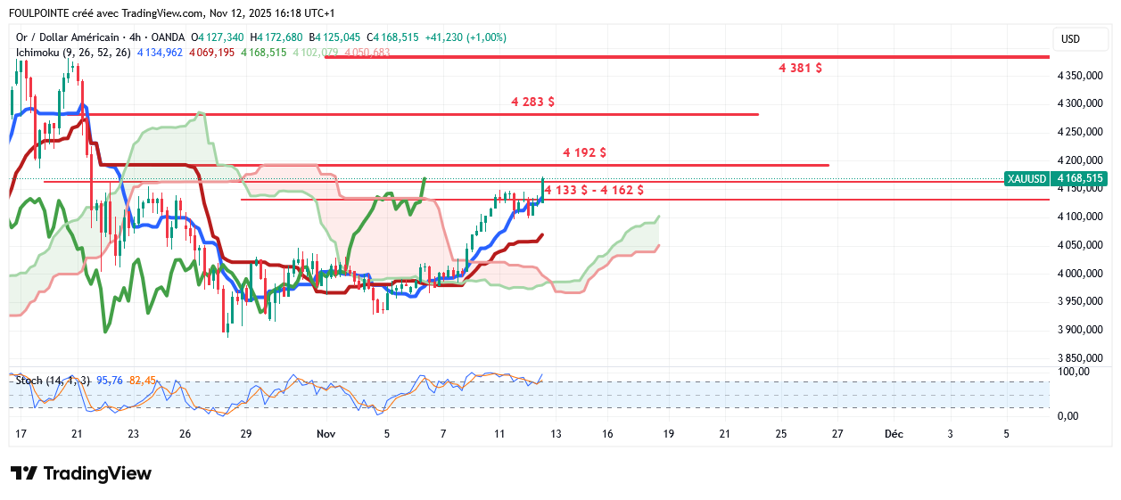 En hausse actuellement de 1 % sur les 4 168 $, la zone des 4133 $ - 4 162 $ serait actuellement franchie.