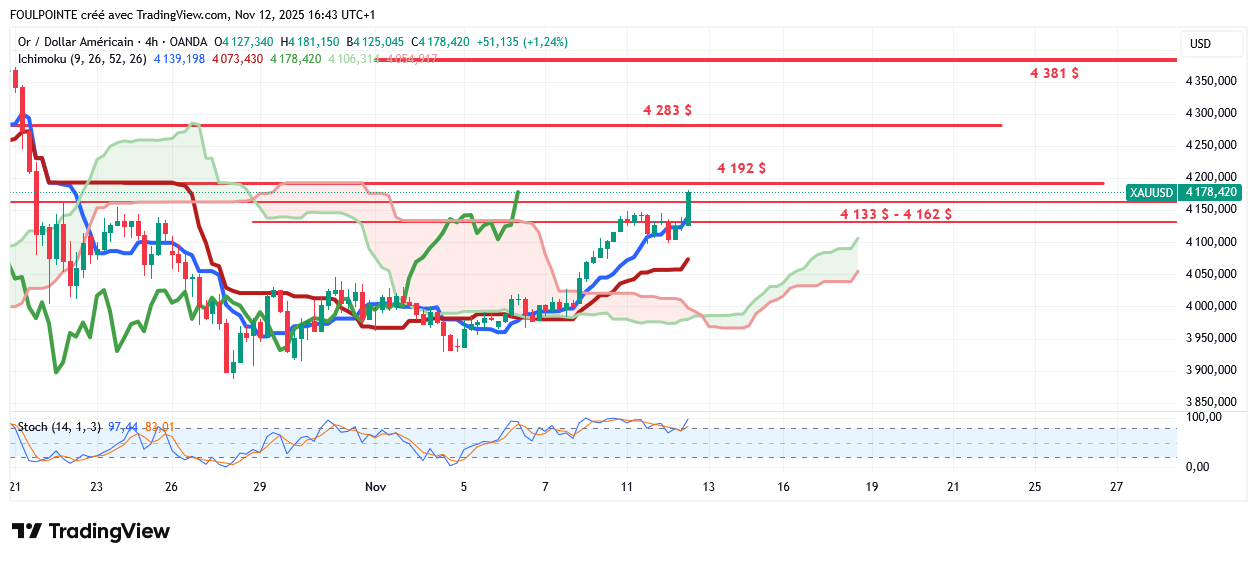En hausse actuelle de 1,24 % sur les 4 178 $.