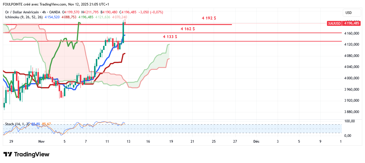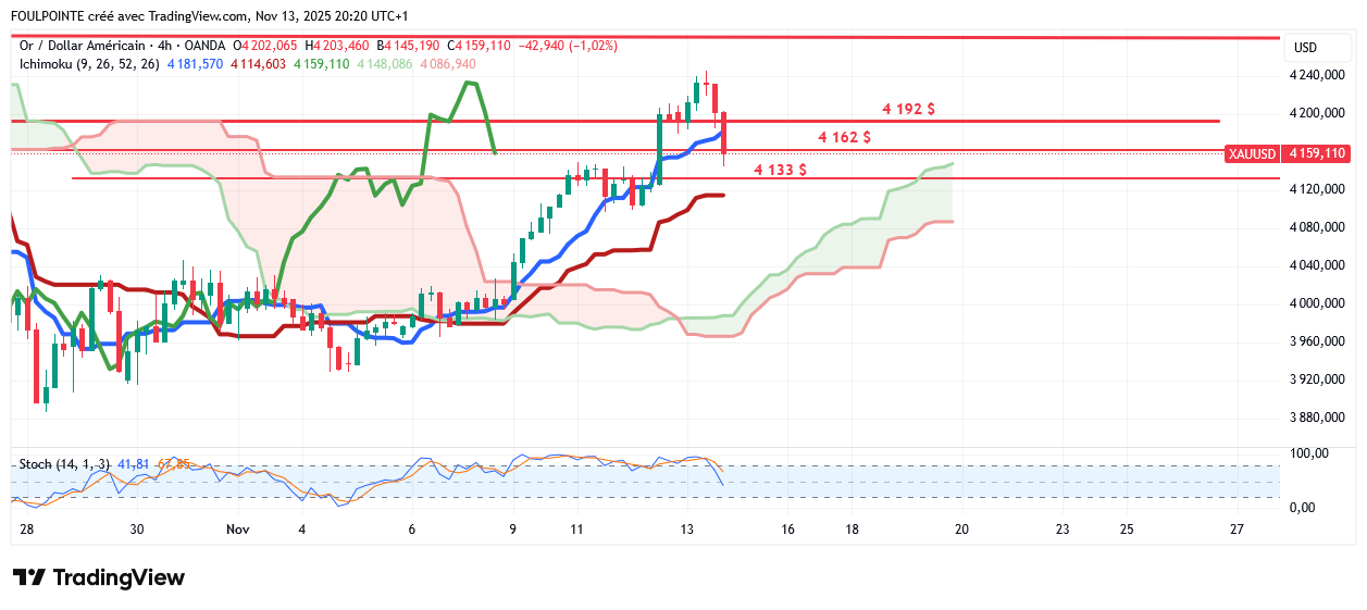 L'or marque le pas à 4 200 $ alors que les cours se stabilisent autour de 4 000 $