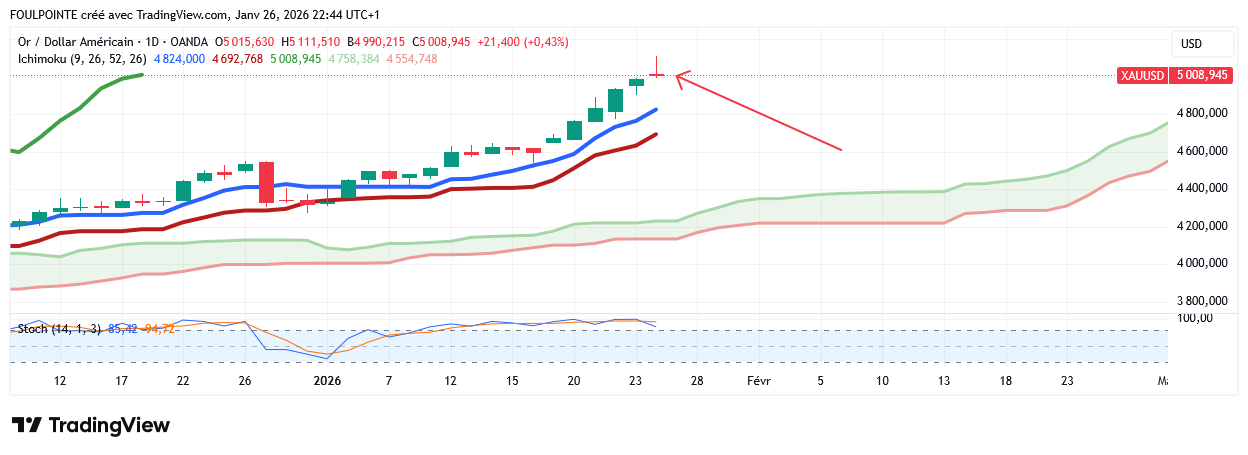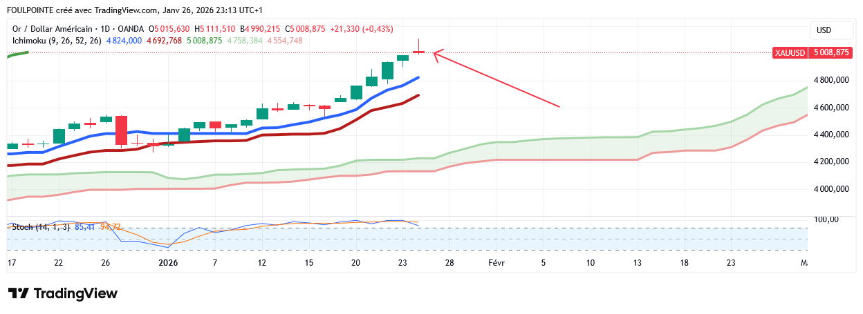 L'or franchit la barre des 5 000 $ : la géopolitique et la dégringolade du dollar alimentent la hausse