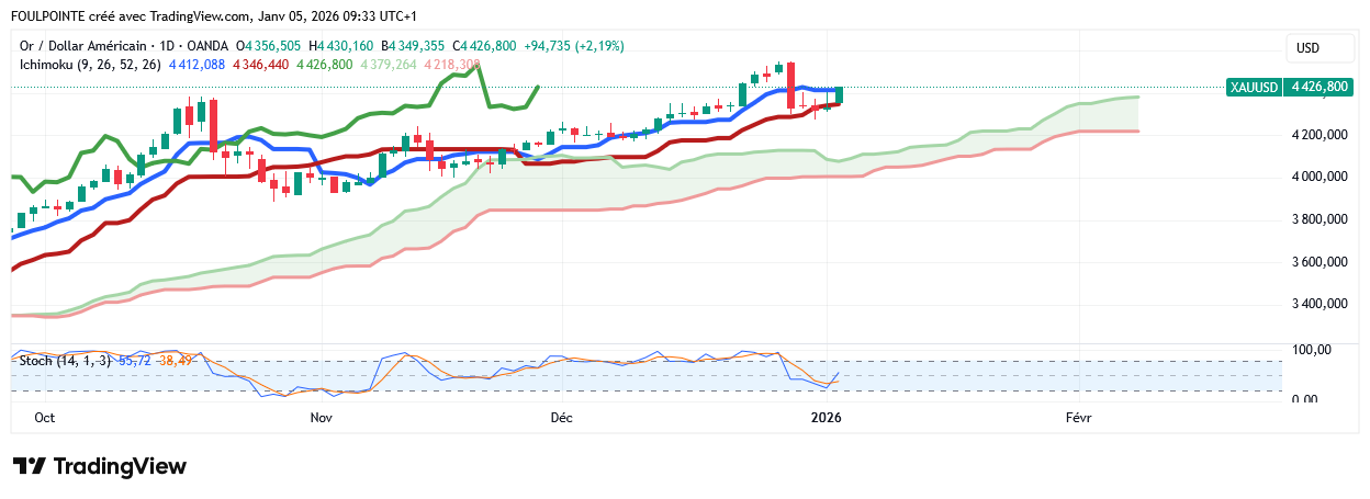 En hausse de 2,19 % sur les 4 426 $.