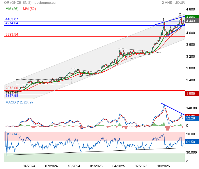 Le métal précieux avait fortement progressé lors des deux dernières séances, soutenu par la demande de valeurs refuges après une escalade sans précédent des tensions entre les États-Unis et le Venezuela.