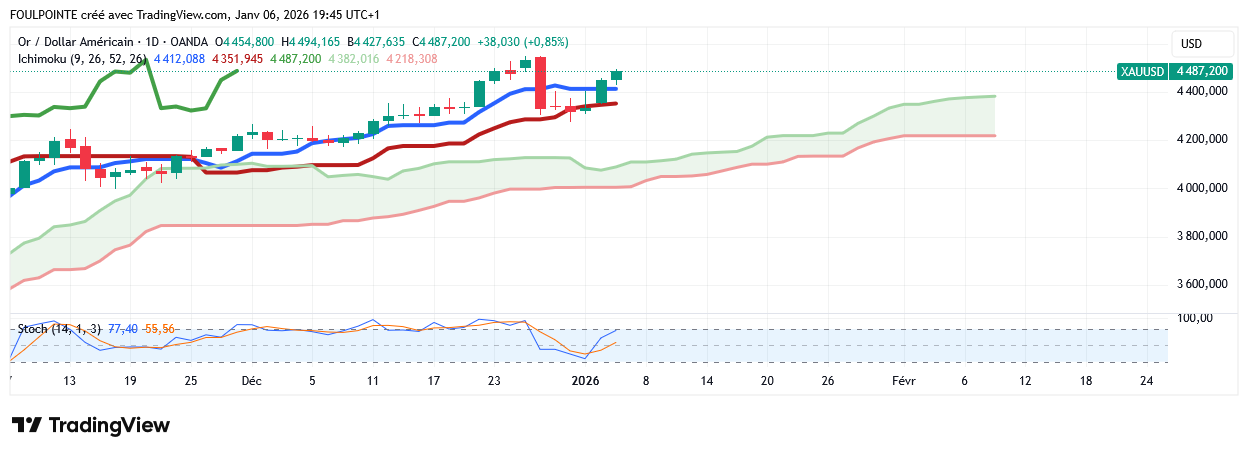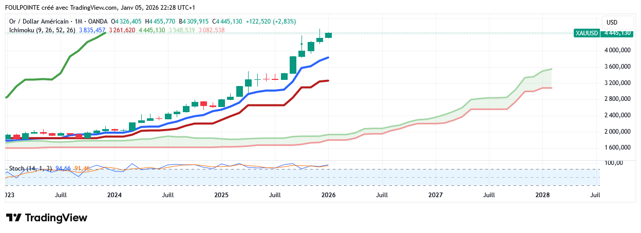 L’or au comptant a chuté de 1% à 4.450,55$ l’once à 09:13 heure de Paris. Les contrats à terme sur l’or américain pour livraison en mars ont baissé de 0,8% à 4.460,55$/oz.