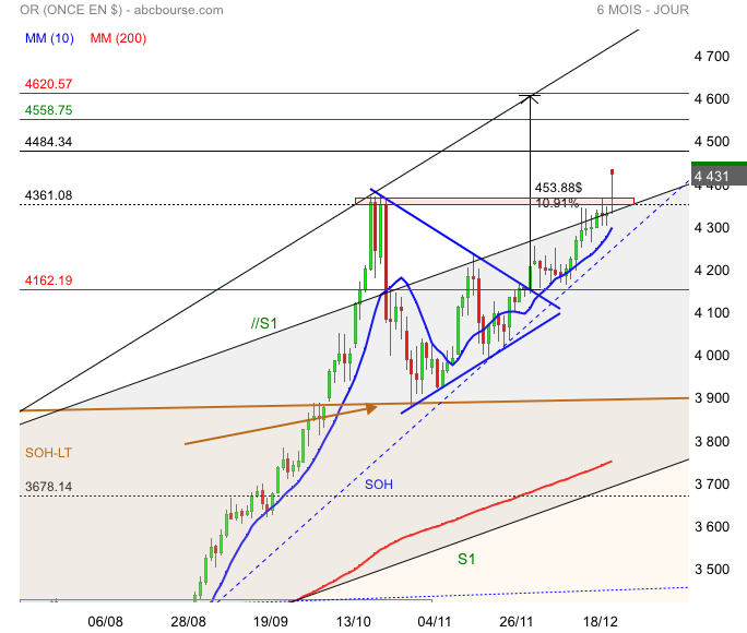 Et à confirmer ce franchissement en franchissant les 4 381 $ l'once ?