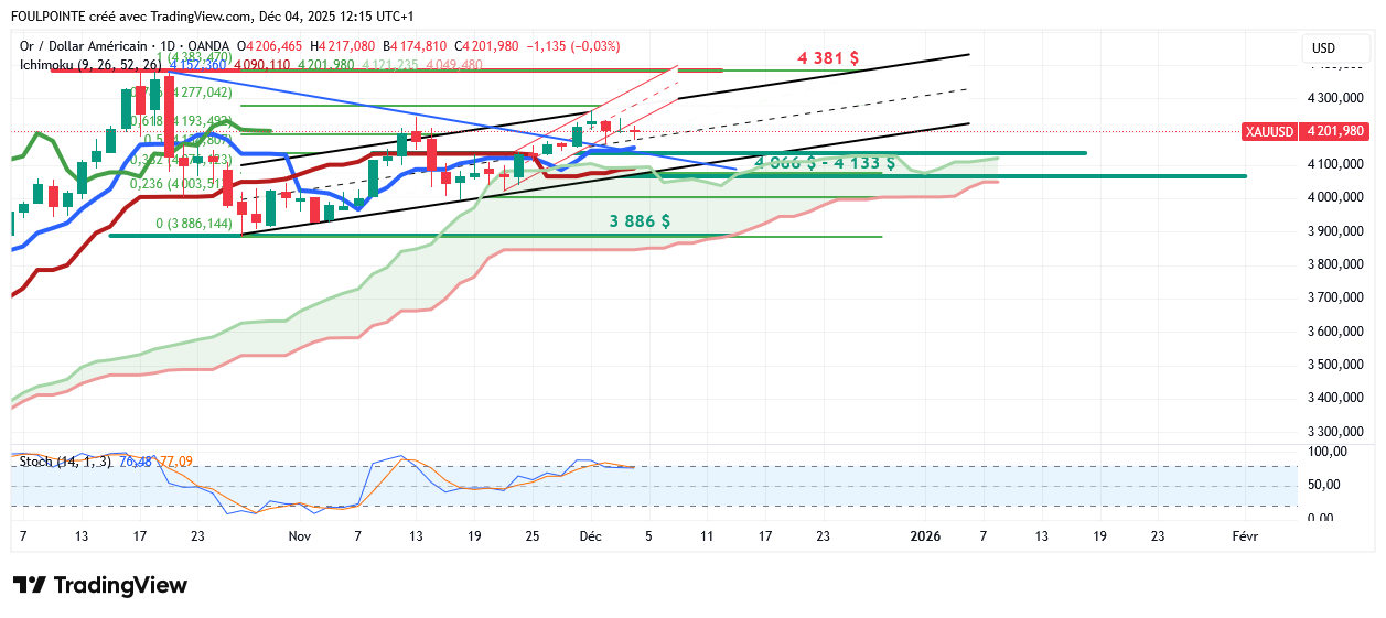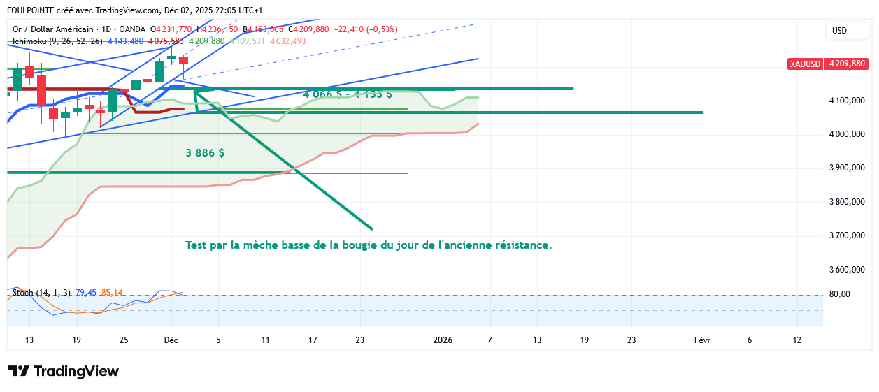 On a juste en-dessous la zone des 4 066 $ - 4 133 $.