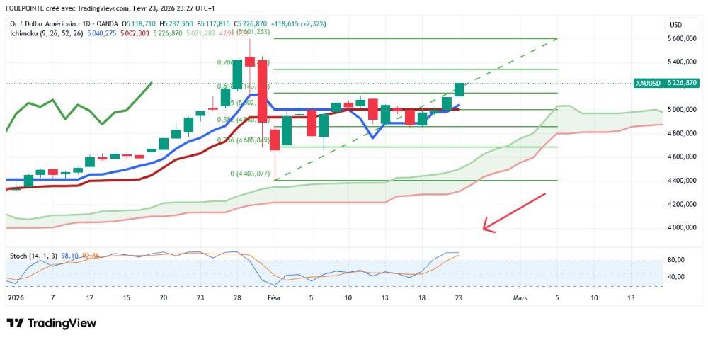 Elle a indiqué que l'évolution des prix « penche du côté haussier, se maintenant au-dessus d'un niveau de résistance précédent pour le mois de février », le passage au-dessus de 5 100 $ confirmant la percée structurelle. Elle a cependant souligné que l'indice de force relative (RSI) est revenu aux niveaux de surachat de janvier, juste avant la forte baisse observée après les sommets historiques, et que le profil de momentum actuel reflète les précédents pics de prix. Hilal a déclaré qu'en conséquence, l'or pourrait avoir du mal à maintenir ses gains au-dessus de 5 000 $ l'once à moins de franchir nettement la résistance proche de 5 200 $ et 5 300 $, car les positions excédentaires accroissent la vulnérabilité du métal jaune à des corrections brutales.