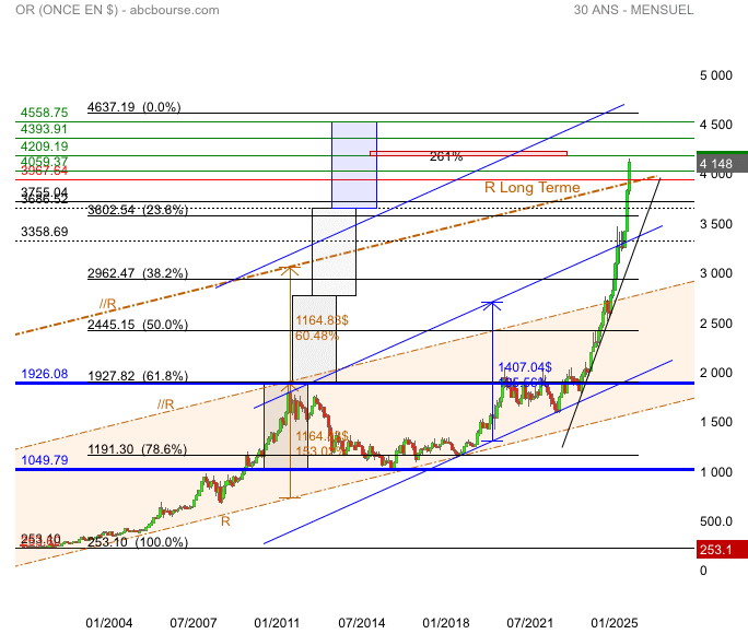 En tous les cas l'Or en $ continue de grimper ce matin : en hausse de 0,82 % sur les 4 361 $.