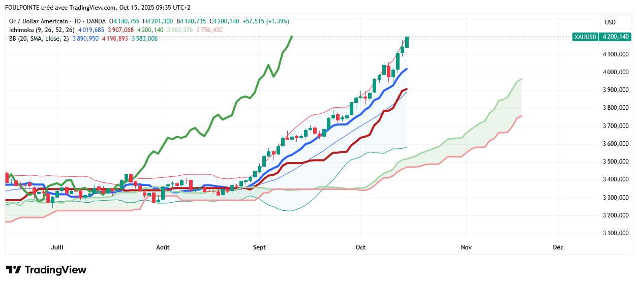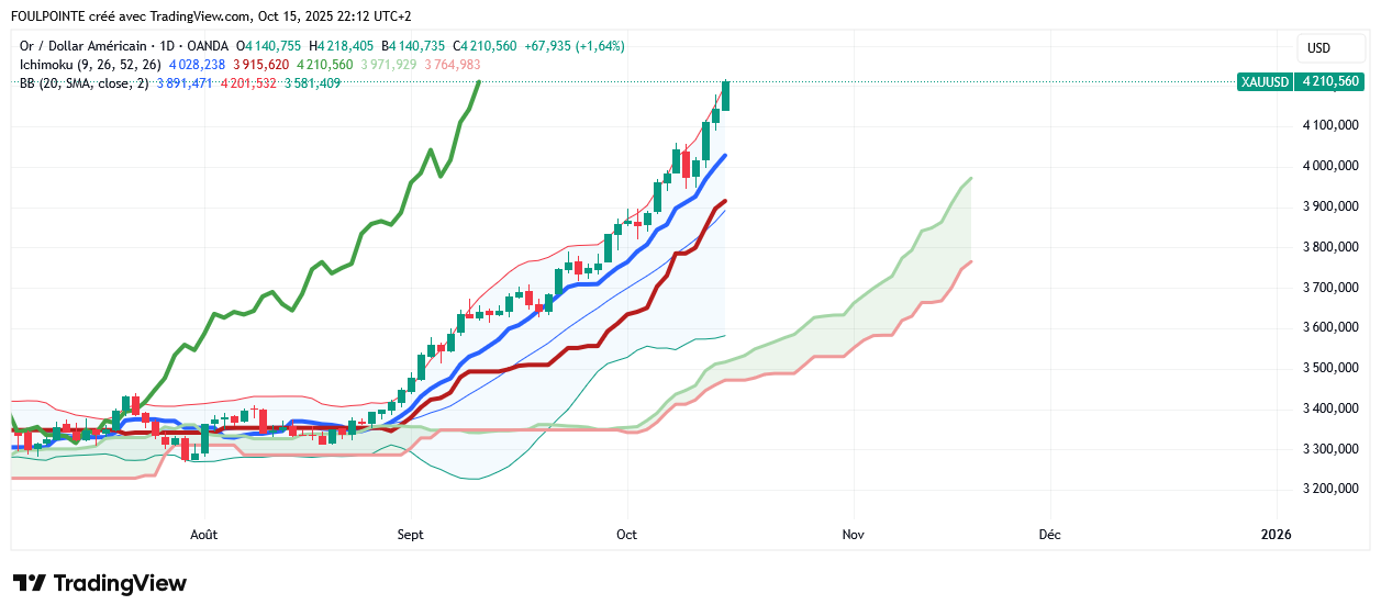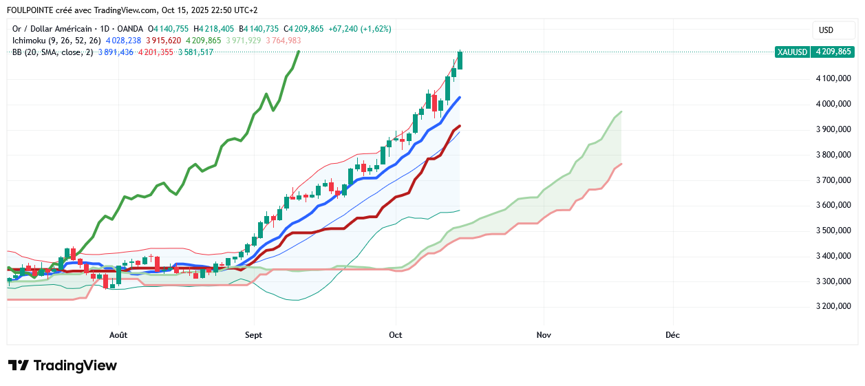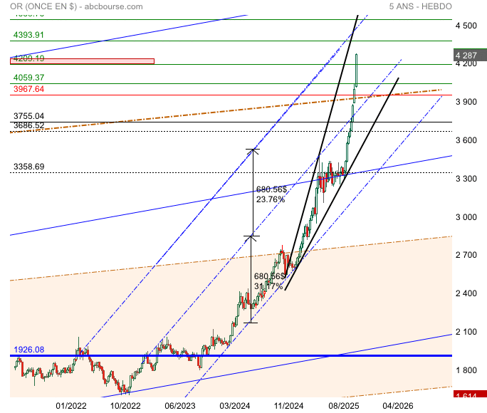 L’or a atteint un nouveau sommet de 4 258,76 $ l’once jeudi. Sa trajectoire future dépend des réactions des investisseurs aux éléments tactiques et fondamentaux.
