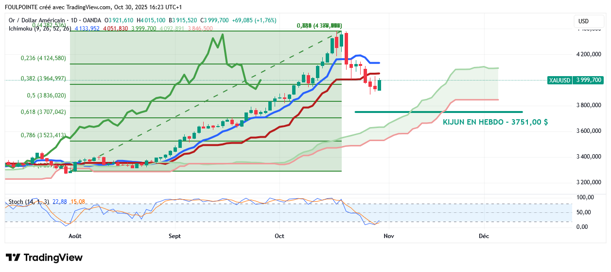 On clôture au-dessus des 4 000 $ avec un joli marubozu. Retour en force des haussiers ?