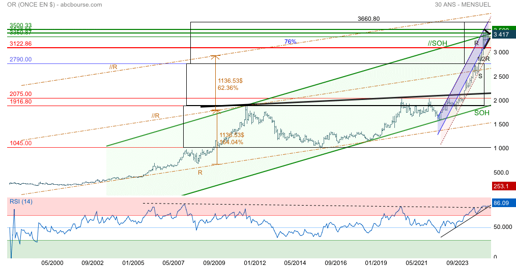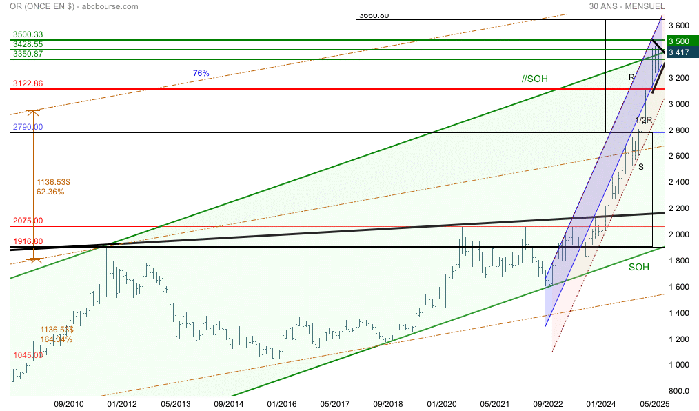 Pour faire plus simple : si, le ou les prochains mois, on n'arrive pas à casser les 3500 $ en clôture, il est fort à craindre que les cours se mettent à respirer.